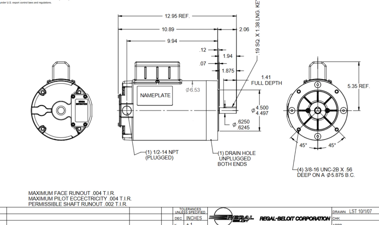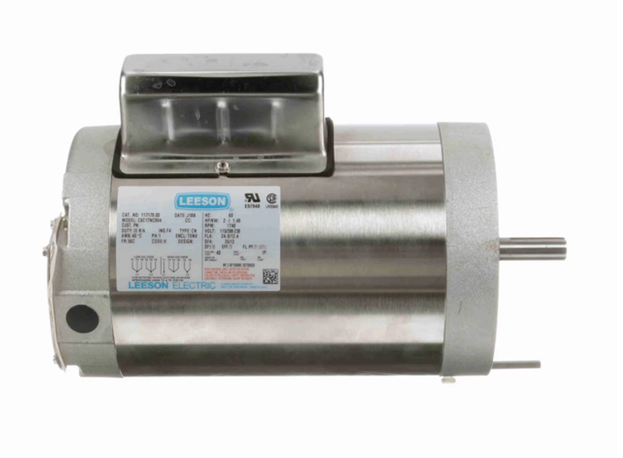 117179.00 Leeson Extreme Duck 2 Hp 1800 RPM 208-230/460V 1-Phase 56C Frame TENV (no Base) Motor