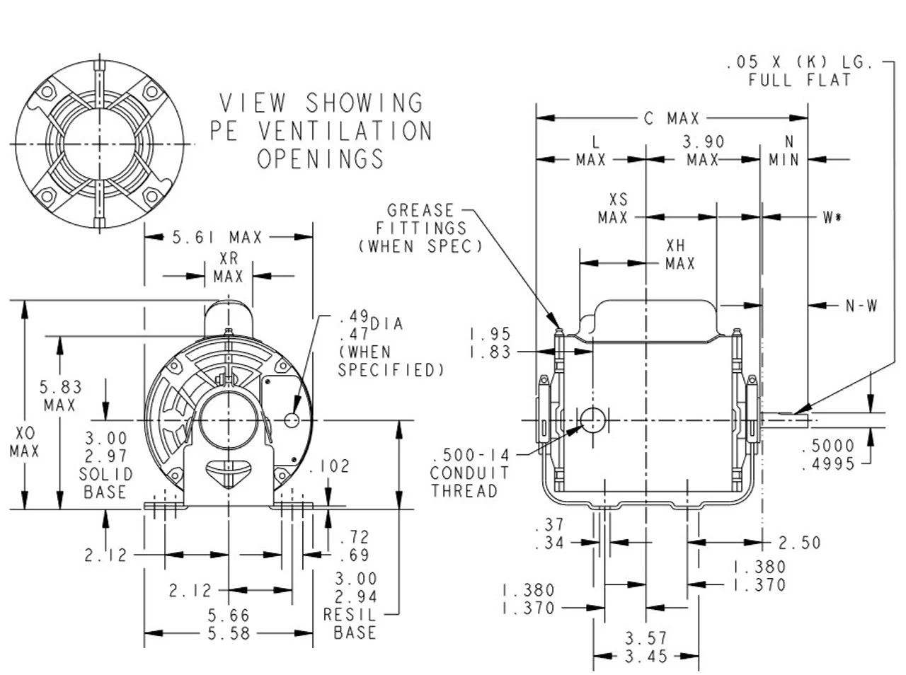 - Resilient Base, Reversible, Ball Bearings, Class B insulation